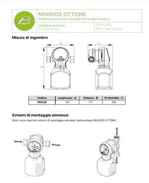 MINIDOS OTTONE è realizzata con piastra di attacco in ottone e corpo pompa in materiale plastico;
