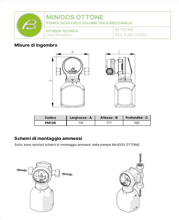 POMPA MECCANICA ANTICALCARE MINIDOS 1/2 F OTTONE PM020 - DOSATORE DI POLIFOSFATI PER CALDAIE