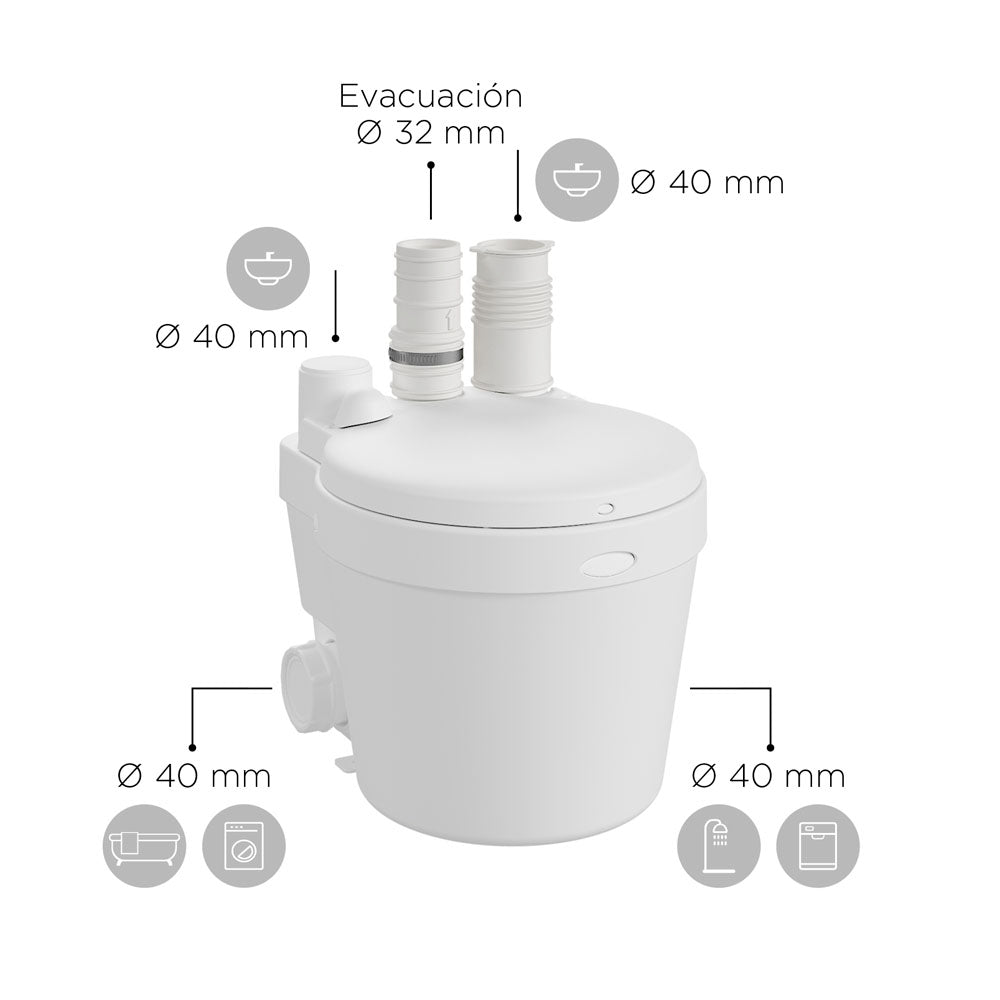 - Scarico orizzontale: fino a 100 m (con una pendenza del 3%)