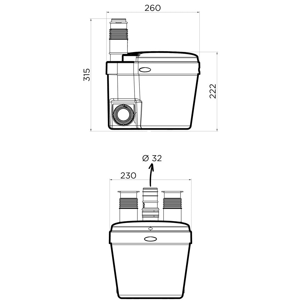 - Diametro scarico: Ø 32 mm
